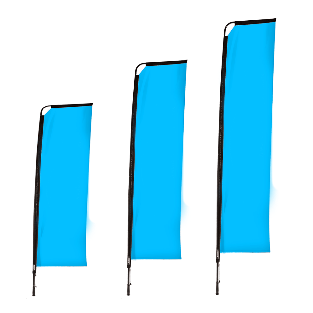 - Telescopic Banners, also known as feather banners, come in single- or double-sided variations.